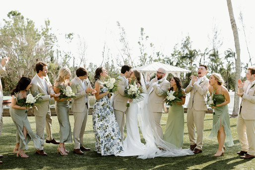 Mackenzie and Anthony chose one of the Hyatt Regency Coconut Point Resort's incredible waterfront locations for their wedding ceremony and reception. The beautiful couple decided to mix classic modern elements with simple green tropical touches. Not a single detail was missed. From the fresh white rose throughout the reception to the simple use of green palm leaves used throughout the decor and bouquets, everything was in line with their modern tropical theme.